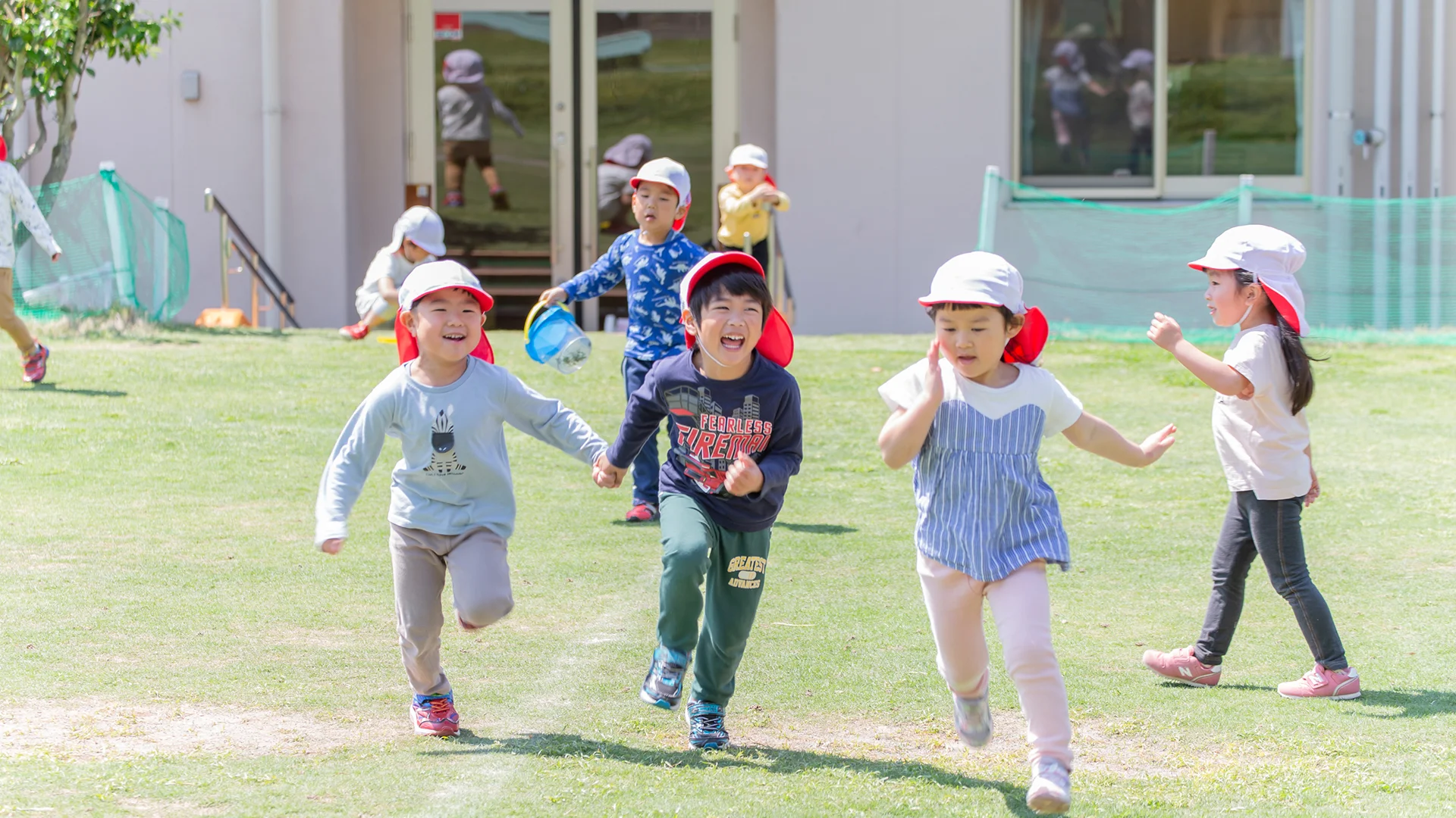 子どもたちが安心して遊び込める環境を整えて、一人一人の成長に合わせた保育を行います。色々なあそびの中で、心身の発達や、協調性、創造力を育てます。